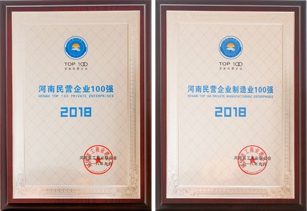 喜報頻傳!我公司再次榮登“河南省民營企業100強”和“2018河南民營企業制造業100強