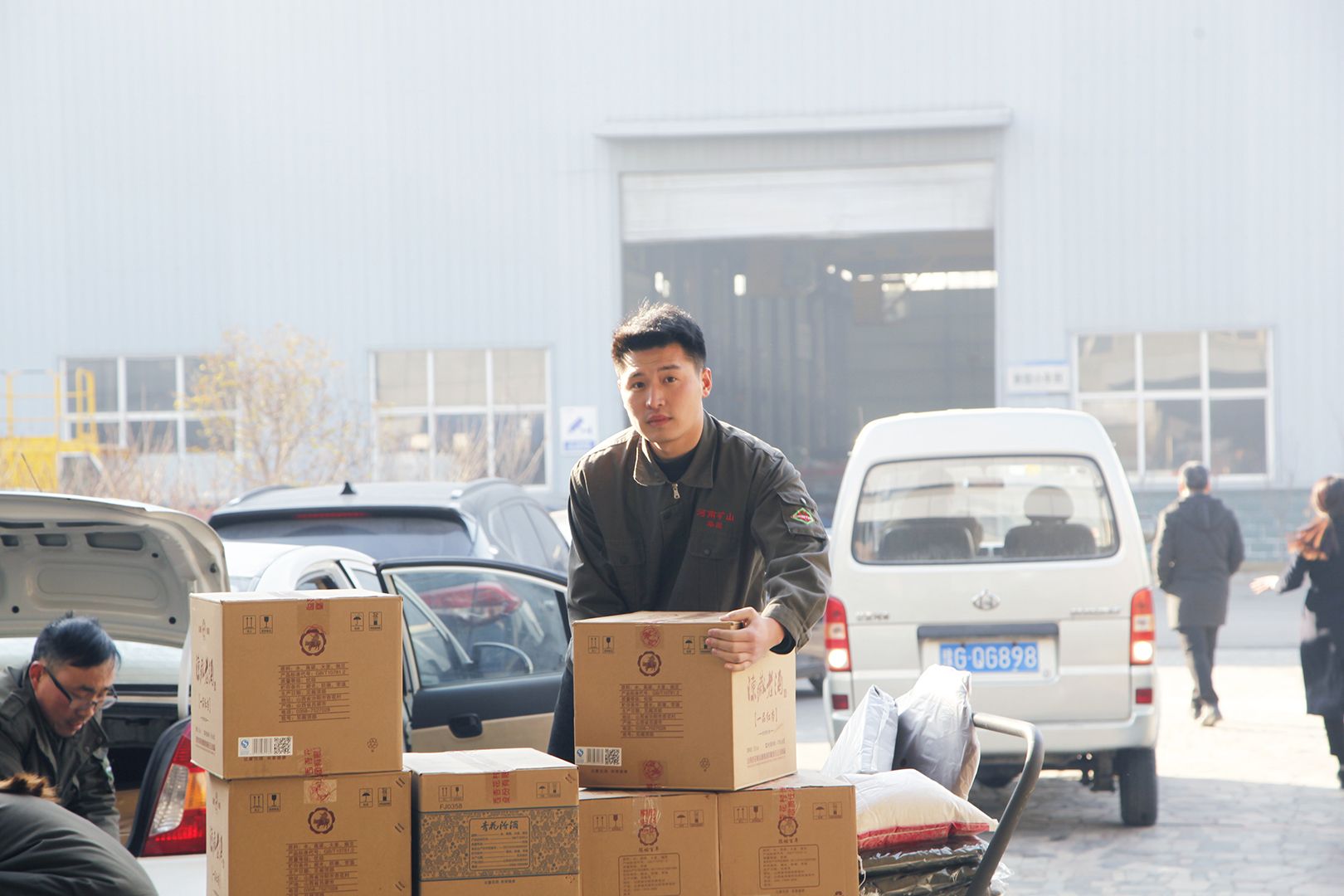 1月23日,河南礦山實業公司門前“送福到家”車隊整齊排列,早已準備好的禮品整齊擺放,工作人員精神飽滿,忙著依次排隊、領取、裝車,河南礦山新春送祝福的車隊出發了,我們將陸續把這份祝福送到每個業務經理家中。