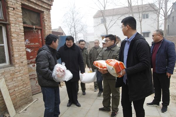 1月30日,河南礦山黨委副書記、工會主席張如志帶領幫扶慰問小組走村串戶,帶著公司創始人、黨委書記崔培軍的囑托,對公司周邊七個行政村四十四戶貧困戶,開展"春節慰問、精準扶貧"走訪活動,把新春的祝福和慰問品送到幫扶群眾家中。