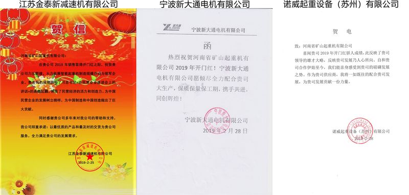 河南礦山首季開門紅,訂單多、生產如火如荼。各大供應商紛紛來函來電,祝賀公司取得了2019年首季開門紅,并表示河南礦山所用原材料優先供給,所供產品保質、保量、按時送貨,確保河南礦山大生產如期進行。
