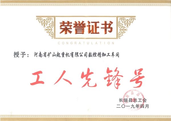 2019年“五一”國(guó)際勞動(dòng)節(jié)期間,河南礦山雙梁六班班長(zhǎng)管建春、機(jī)加工車(chē)間主任靳孝波、機(jī)裝五班班長(zhǎng)李杰等員工相繼榮獲“河南省勞動(dòng)模范”、新鄉(xiāng)市“五一勞動(dòng)獎(jiǎng)?wù)隆薄㈤L(zhǎng)垣縣“五一勞動(dòng)獎(jiǎng)?wù)隆钡葮s譽(yù),雙梁六班榮獲“新鄉(xiāng)市工人先鋒號(hào)”、數(shù)控精加工車(chē)間榮獲“長(zhǎng)垣縣工人先鋒號(hào)”。