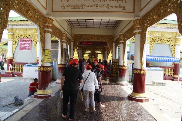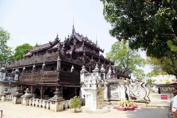 參觀完固都陶佛塔,爸爸媽媽們來到了貢榜王朝敏東王和王后的寢宮——金色宮殿柚木寺,這也是曼德勒***保存至今的皇宮主體建筑。