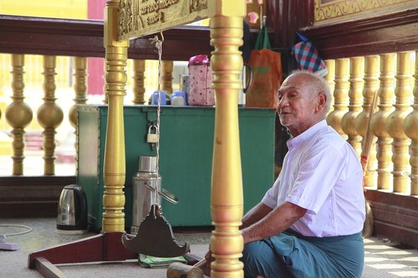 早晨的曼德勒安靜而祥和,時(shí)不時(shí)從佛寺中傳來幾聲低沉而悠長的鐘聲。