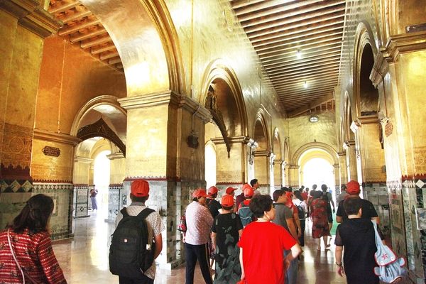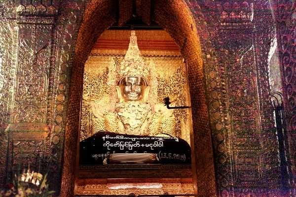 馬哈穆尼寺又被緬甸人叫做大金佛塔,這是由于寺廟的中央大殿里有座高4米的青銅佛像,佛身貼滿了金箔,佛陀禮冠上綴滿了歷代緬甸人供奉給佛祖的珠寶鉆石,每顆都價值連城。據說這里的佛像經過佛祖的親自開光,當地人都將這座佛像視為佛祖的真身,在緬甸有著非常神圣的地位。
